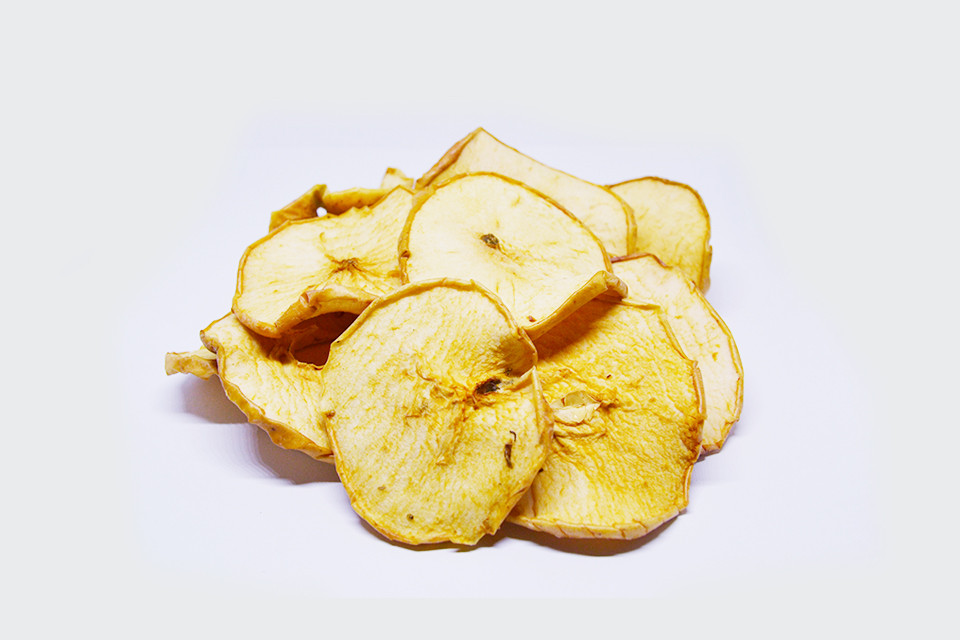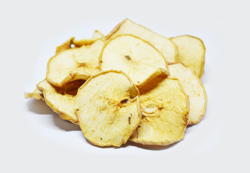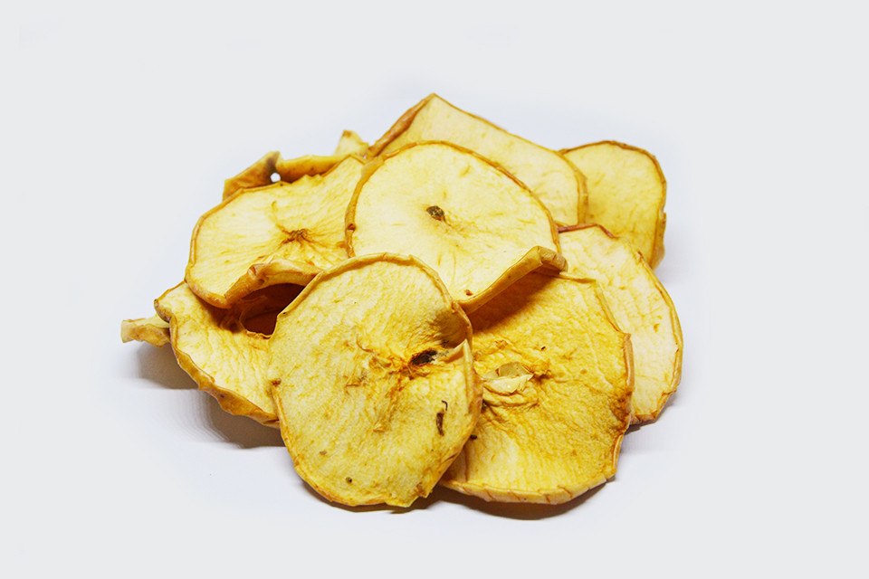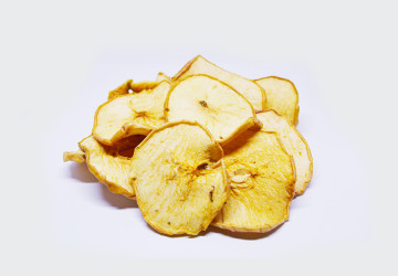 Apple Chips - Dried apple chips packed in DoyPack bags with a ziplock system of 250, 500 grams, or in boxes of 6, 10 kg.